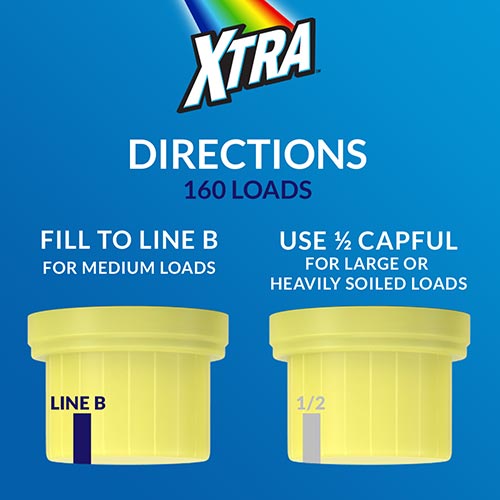 Pre-treat for best results, wet fabric and apply detergent directly onto spots and tough stains. Rub gently, wait 5-10 minutes, then wash as directed. Always test an inside seam for colorfastness. Fill cap to Bar 7 for medium loads or 1/2 capful for energy saving cold wash settings.* Use full cap for large or heavily soiled loads.