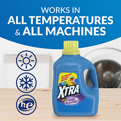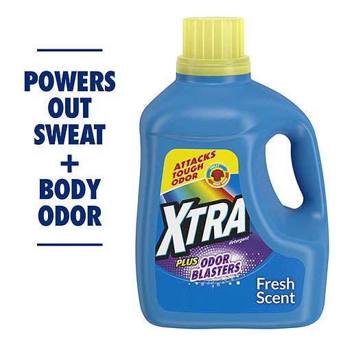 Attack nose-wrinkling smells like sweat and body odor in every laundry load with XTRA Liquid Laundry Detergent Plus Odor Blasters. Its formula delivers an effective clean that attacks tough odors with a from-the-clothesline Fresh scent.